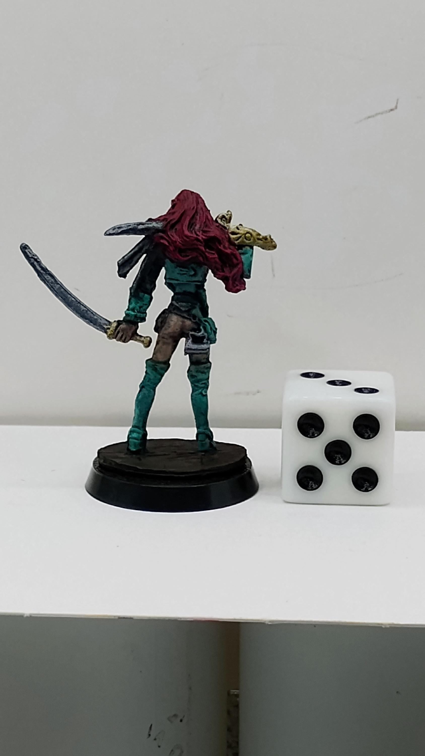 Crimson Haired Human Warrior: Dual Blades, Teal Attire