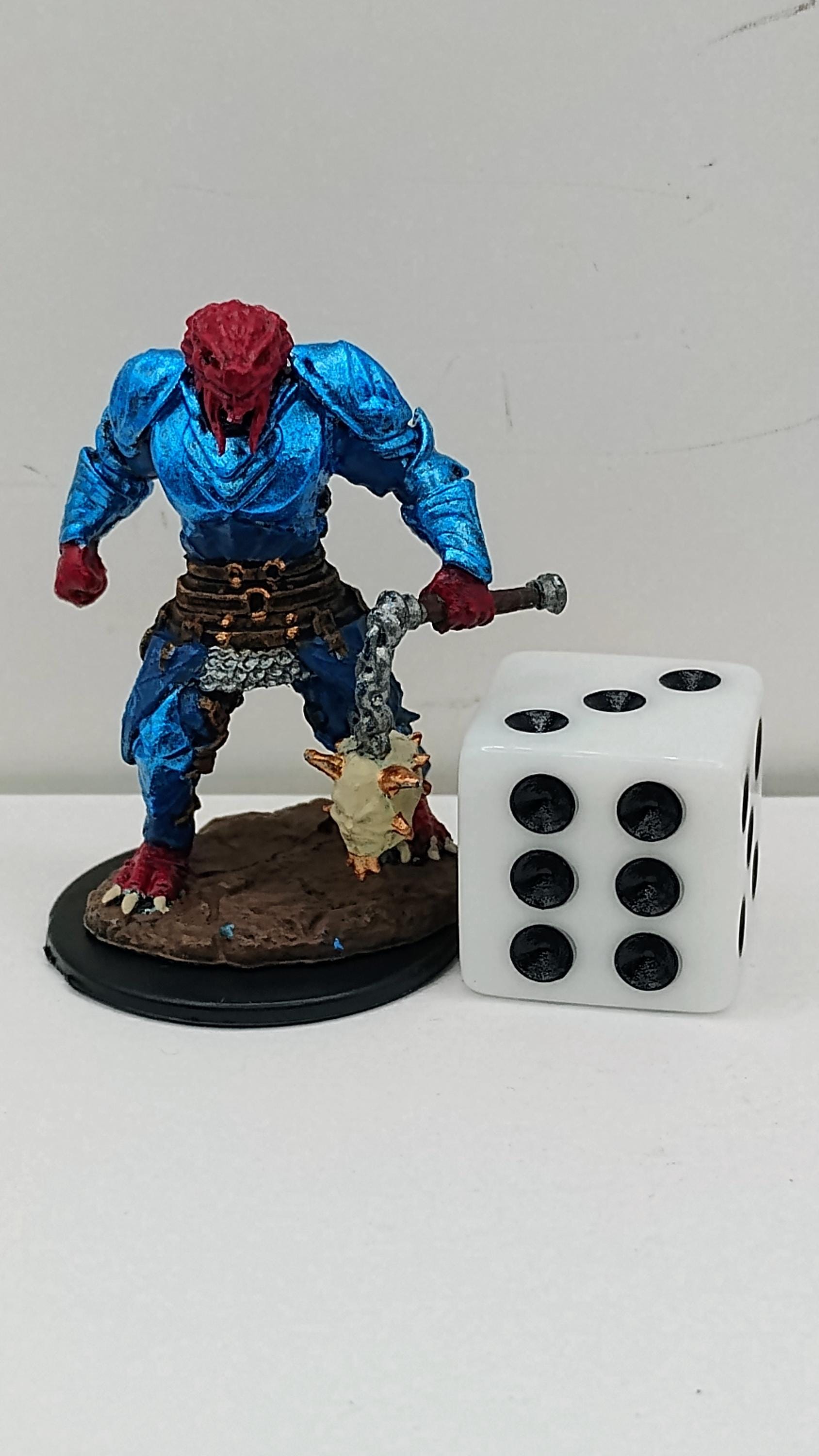 Dragonborn Paladin Miniature: Blue Armor, Spiked Mace
