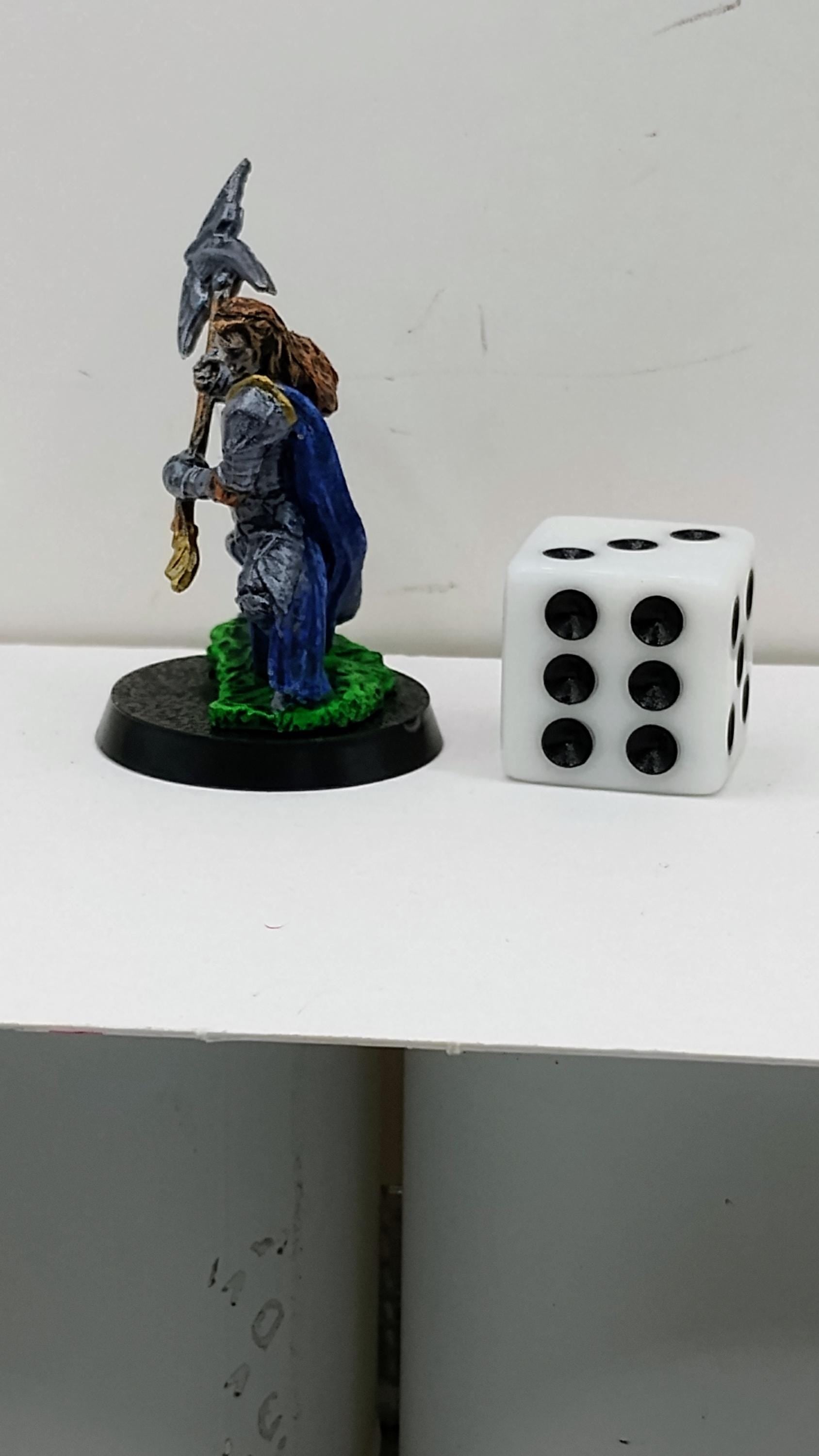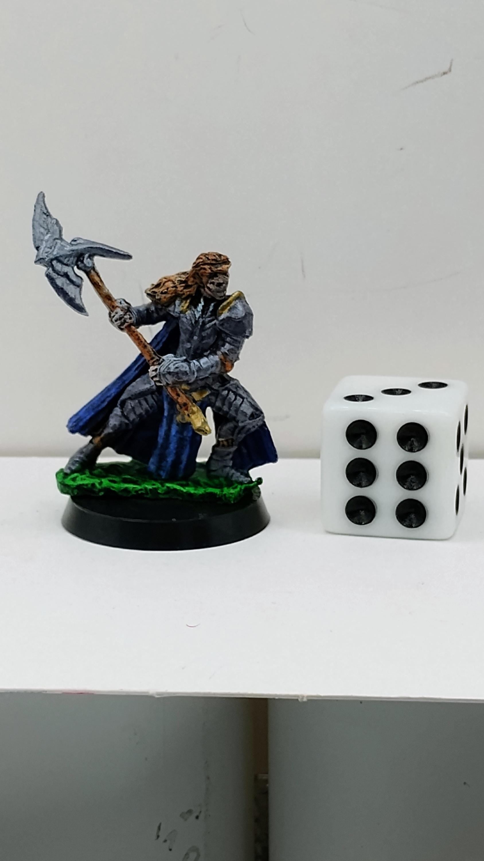 This Elf Warrior miniature stands vigilant with axe in hand, cloaked in blue and clad in polished armor that hints at noble service or battlefield discipline. A perfect frontline guardian or elite honor guard, he brings an air of valor and readiness to any fantasy encounter.