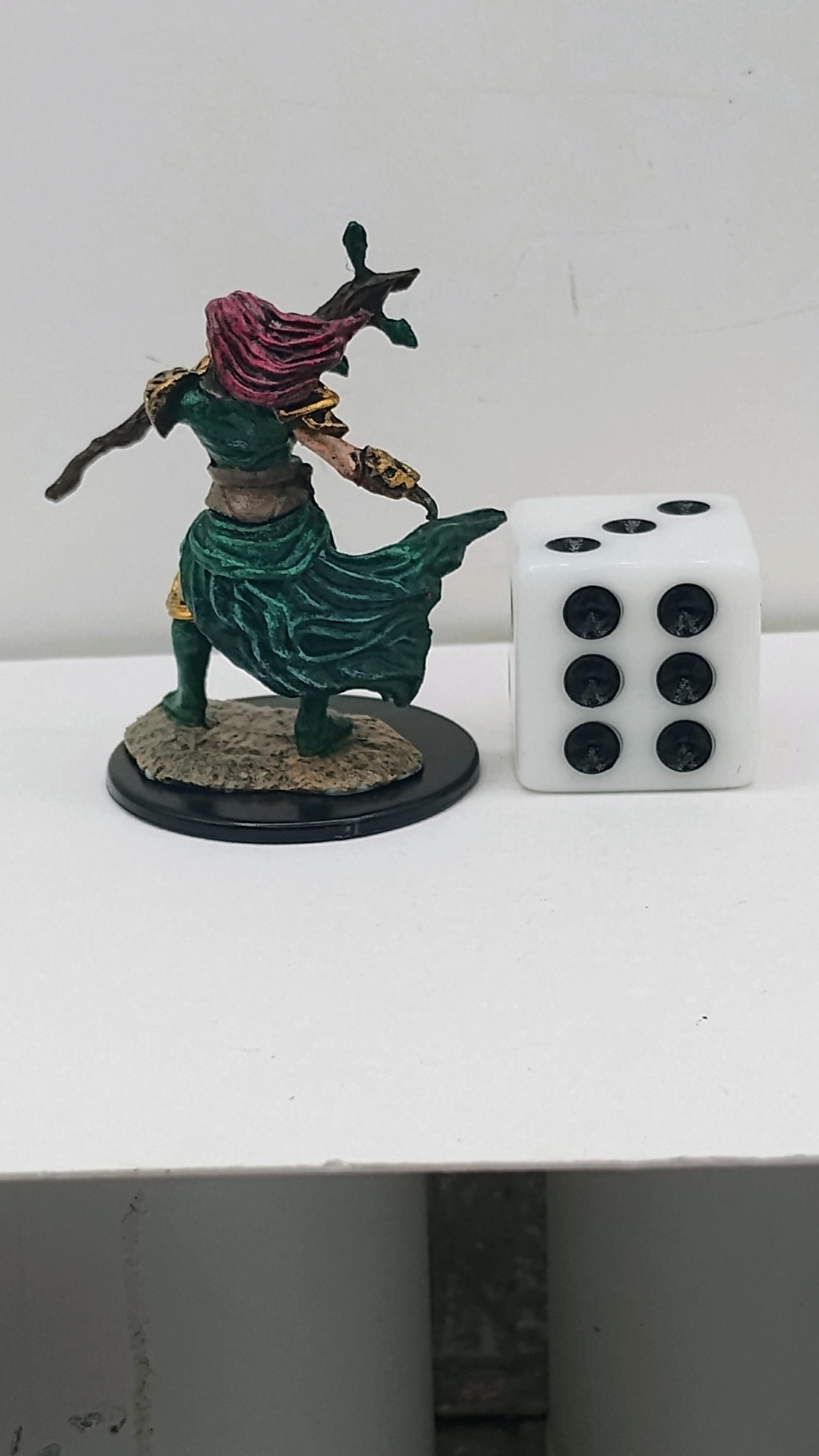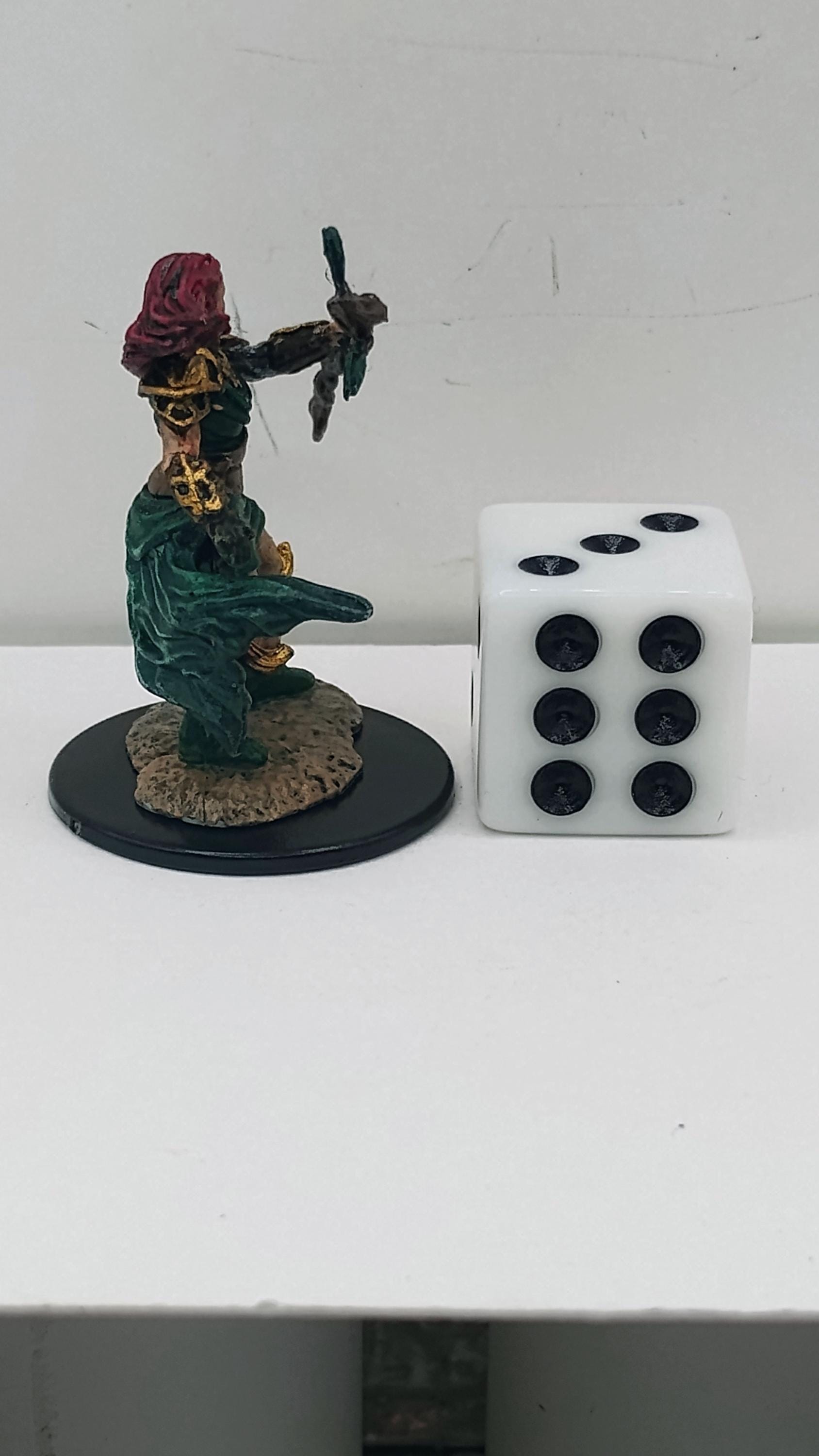 This fierce Human Druid channels the strength of the forest, her crimson hair whipping in the wind as she readies her gnarled staff. Clad in deep green and gold-trimmed armor, she strikes with the wild force of nature itself.