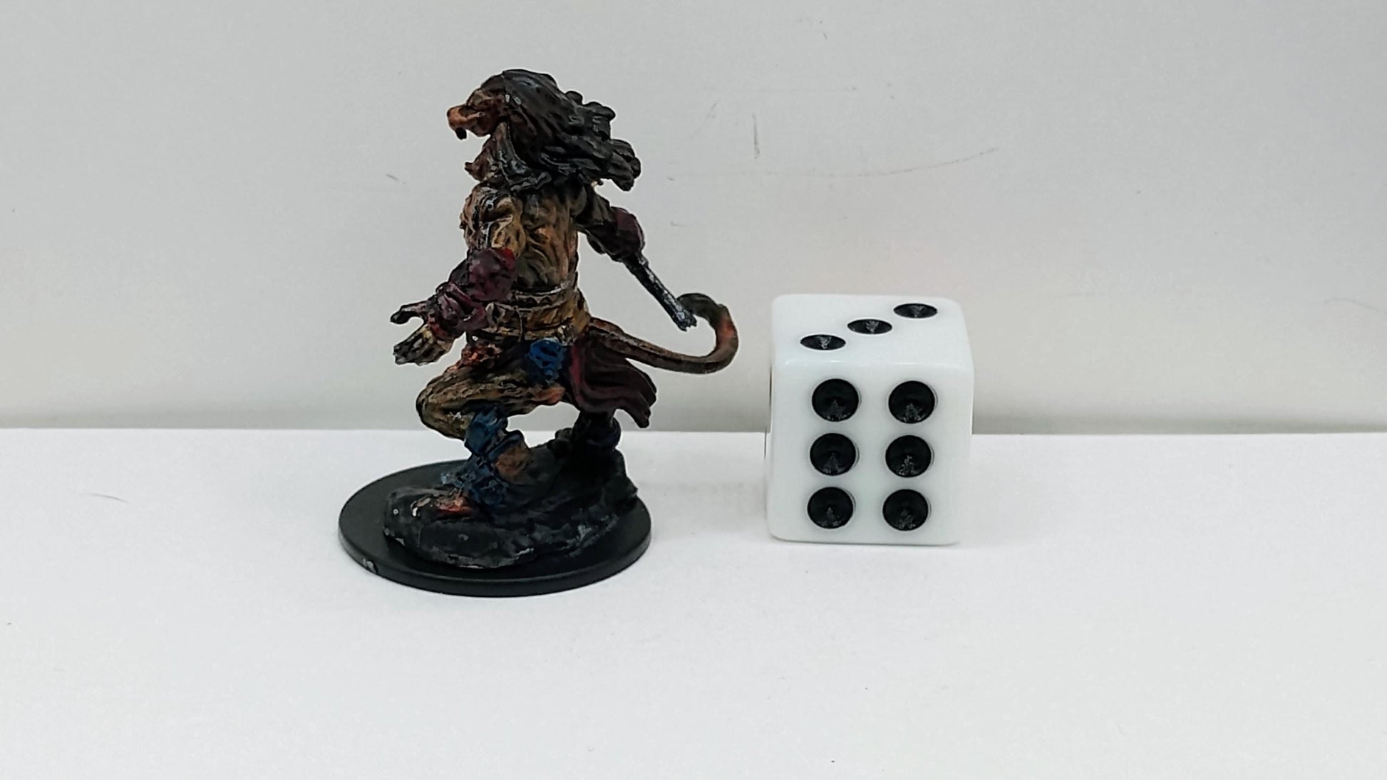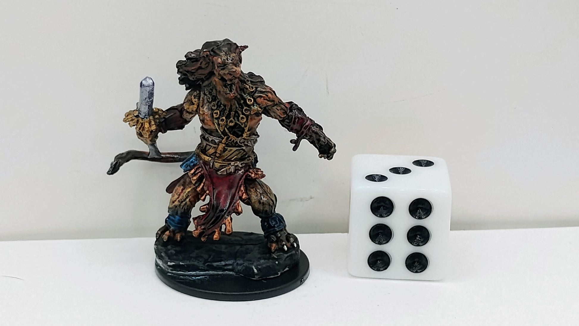 This fierce Nacatl warrior snarls with primal rage, sword poised for a savage strike and tribal ornaments clinging to its fur. Draped in tattered cloth and adorned with claws and fangs, it embodies the untamed strength of the jungle's deadliest hunters.