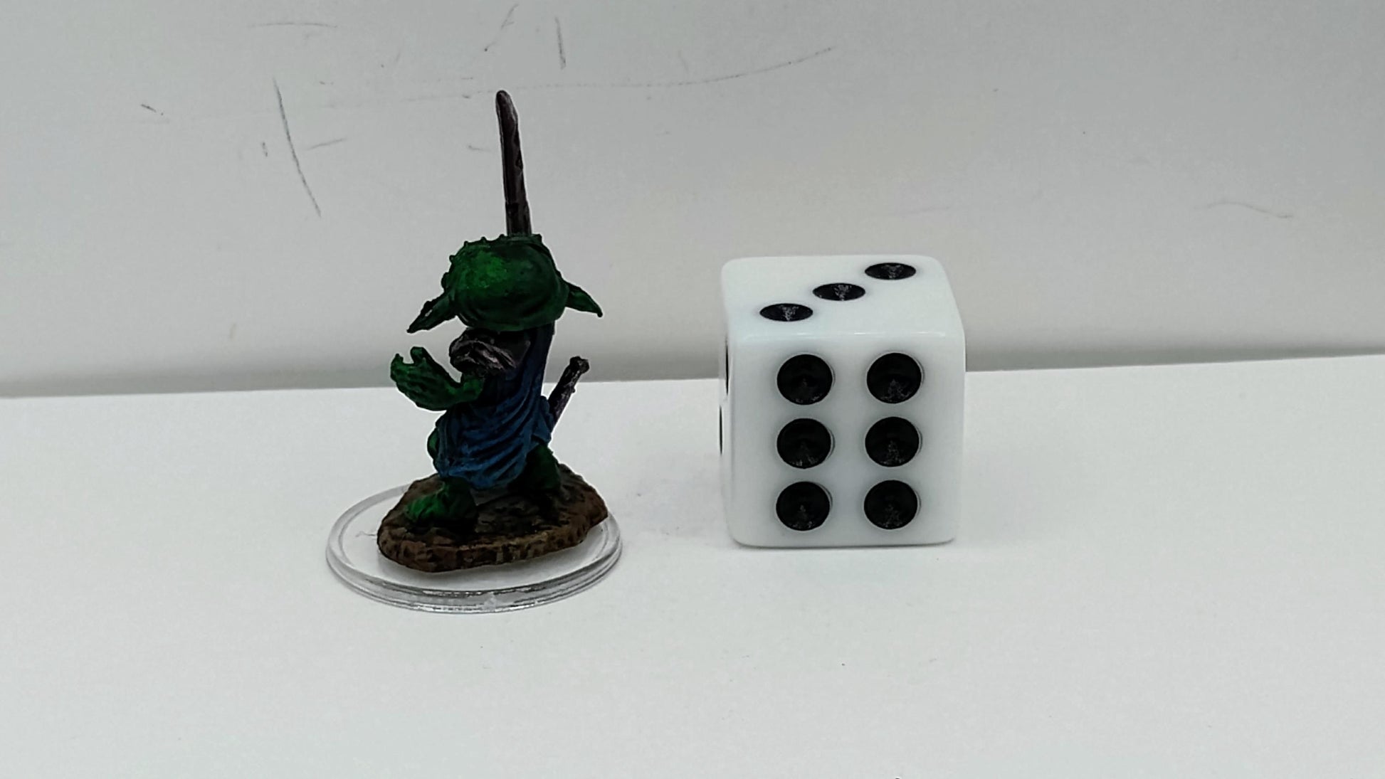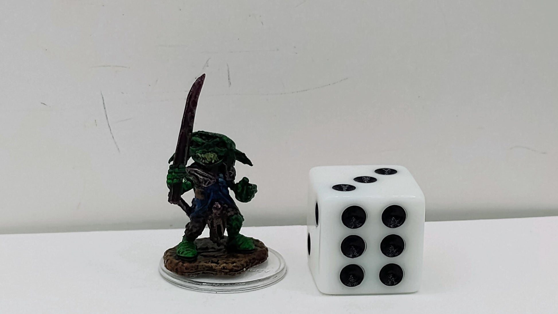 Goblin Fighter Miniature: Ragged Blue Armor, Chipped Scimitar