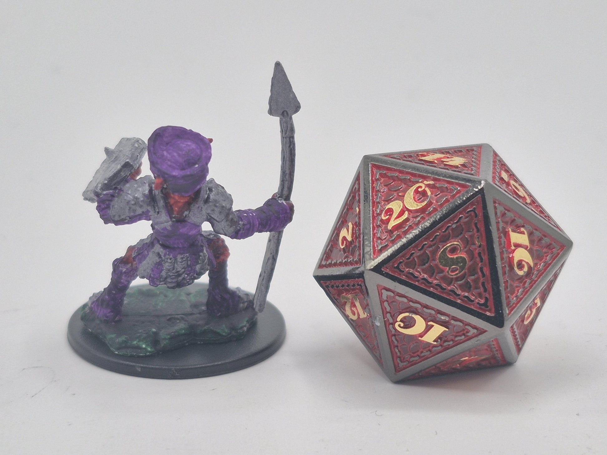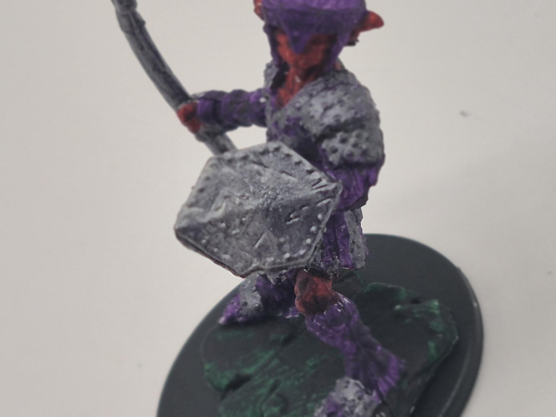 This Hobgoblin warrior stands poised with spear and shield, his crimson skin and iron armor marked by discipline and duty. Clad in warlike purple, he marches as part of a greater machine-one soldier in a legion forged for conquest.