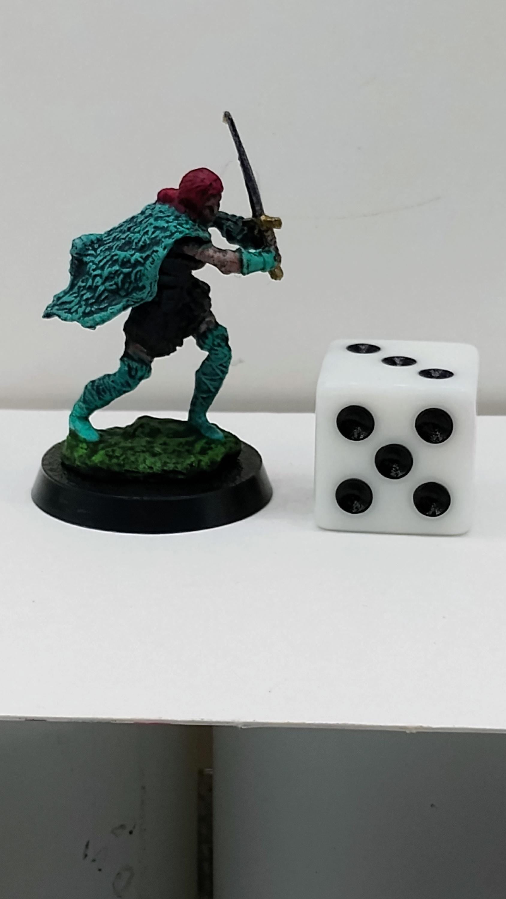 Charging forward with sword raised high, this Human Warrior is a blur of crimson hair and emerald cloth. Her fierce stride and determined gaze mark her as a fearless combatant ready to carve a path through any foe.
