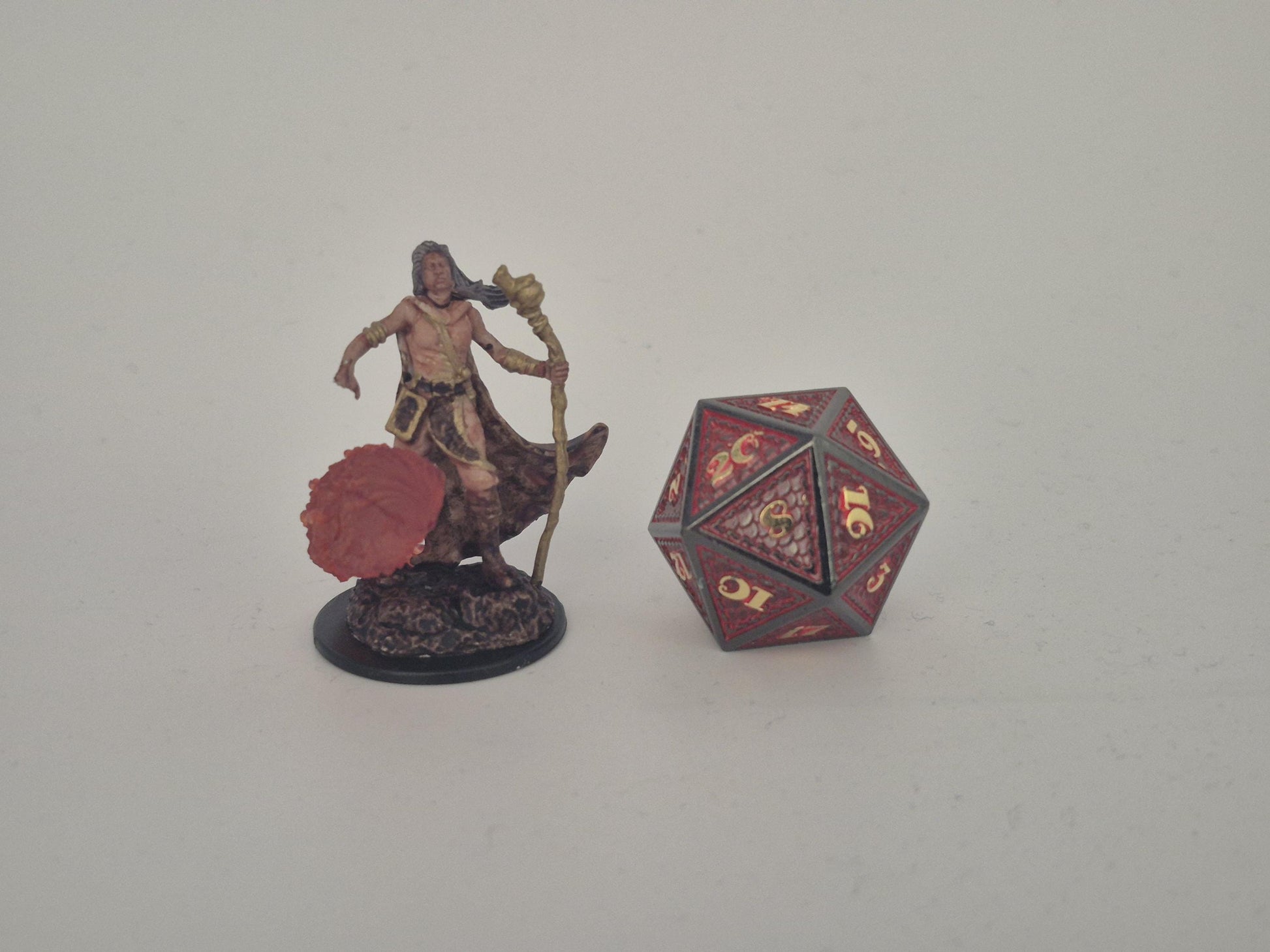 Wielding a golden staff and draped in windswept robes, this Human Wizard conjures a roaring wave of fire with practiced ease. His outstretched hand commands the inferno, a testament to the destructive power bound within his arcane will.