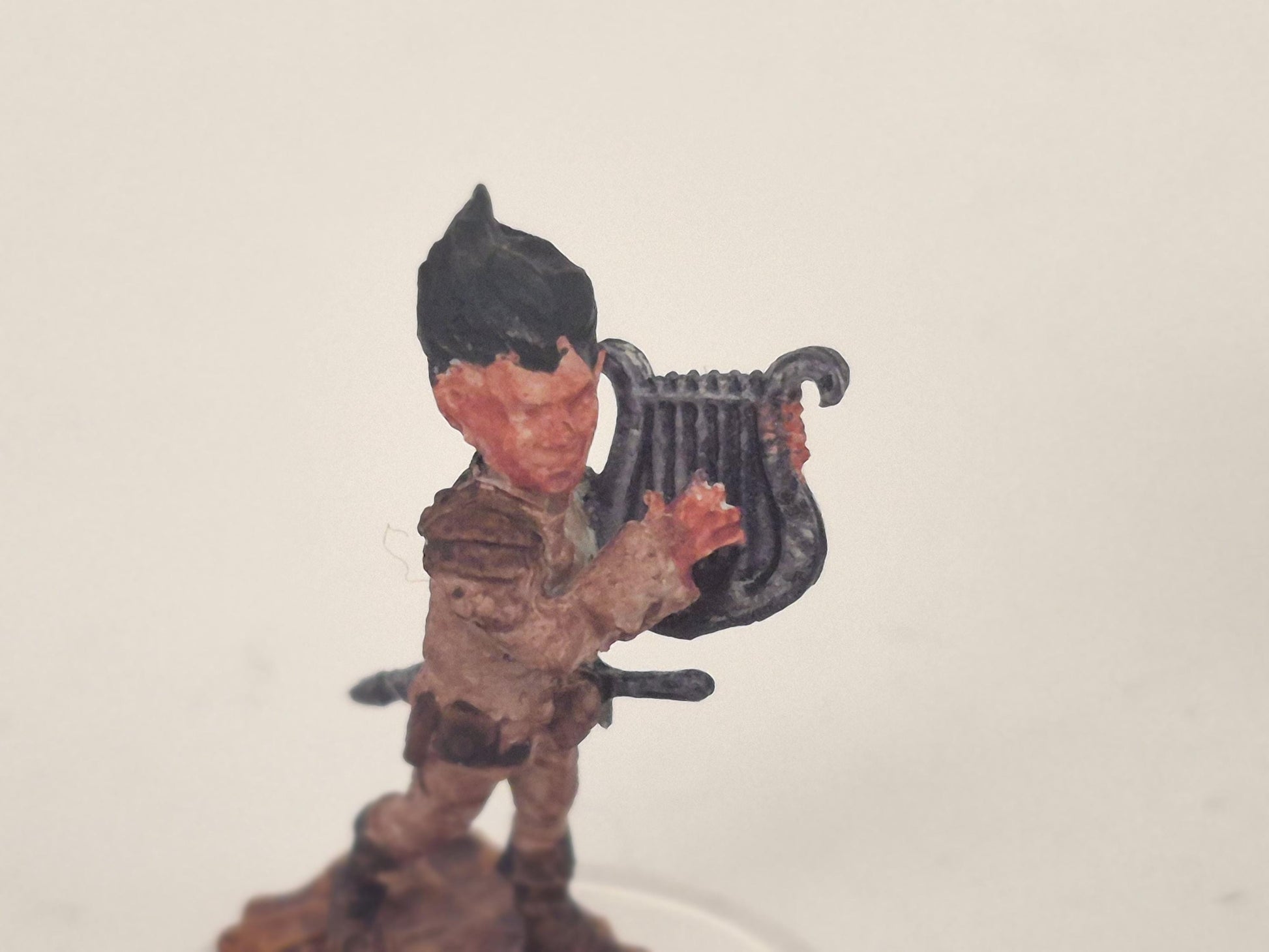 Strumming his harp with flair and a sly grin, this male Gnome Bard enchants the crowd as easily as he charms his foes. With a rapier at his side and songs full of mischief, he dances the line between heroism and troublemaker.