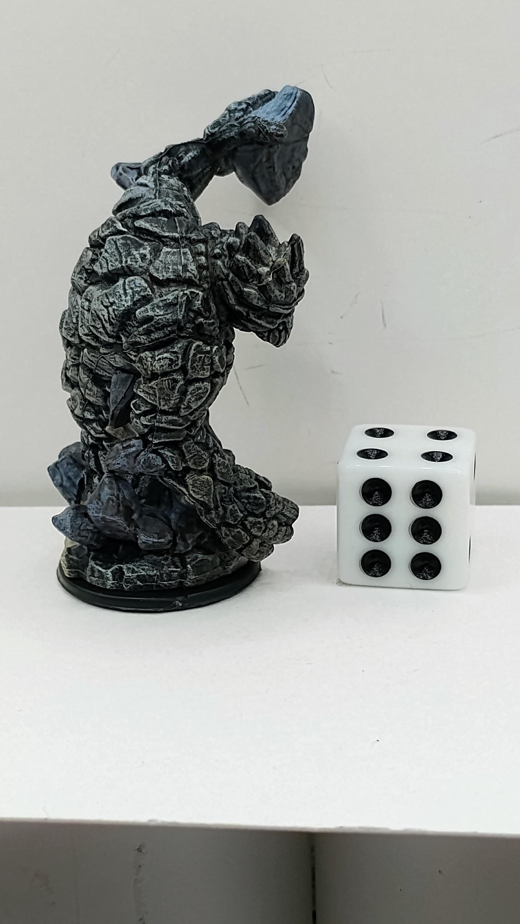This Medium Earth Elemental lumbers forward with a body of jagged stone and crystalline spikes jutting from its form. Towering and unyielding, it looks as if it was hewn directly from the heart of a mountain to serve as nature's indomitable guardian.