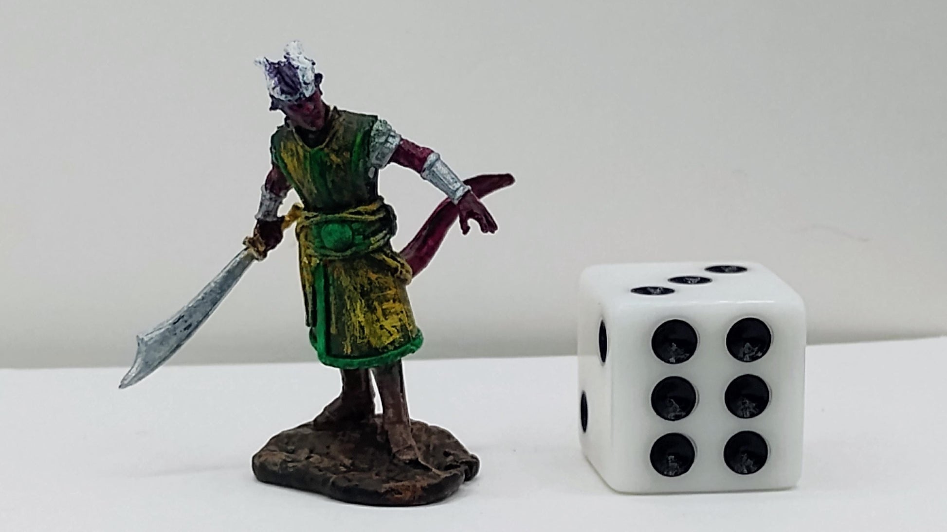 This tiefling fighter stands poised in vibrant green and gold, her curved blade ready to strike with precise fury. With horns raised high and tail flicking behind her, she blends infernal heritage with honed martial discipline.