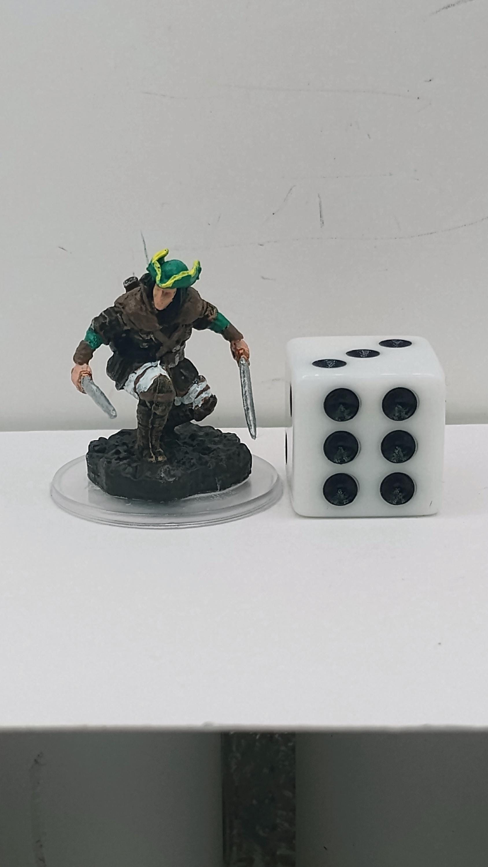 Clad in forest-toned leathers and a feathered cap, this Tireless Tracker crouches low, blades drawn and eyes sharp for prey or foe. Swift and silent, he is a relentless pursuer whose quarry seldom escapes the shadows he haunts.