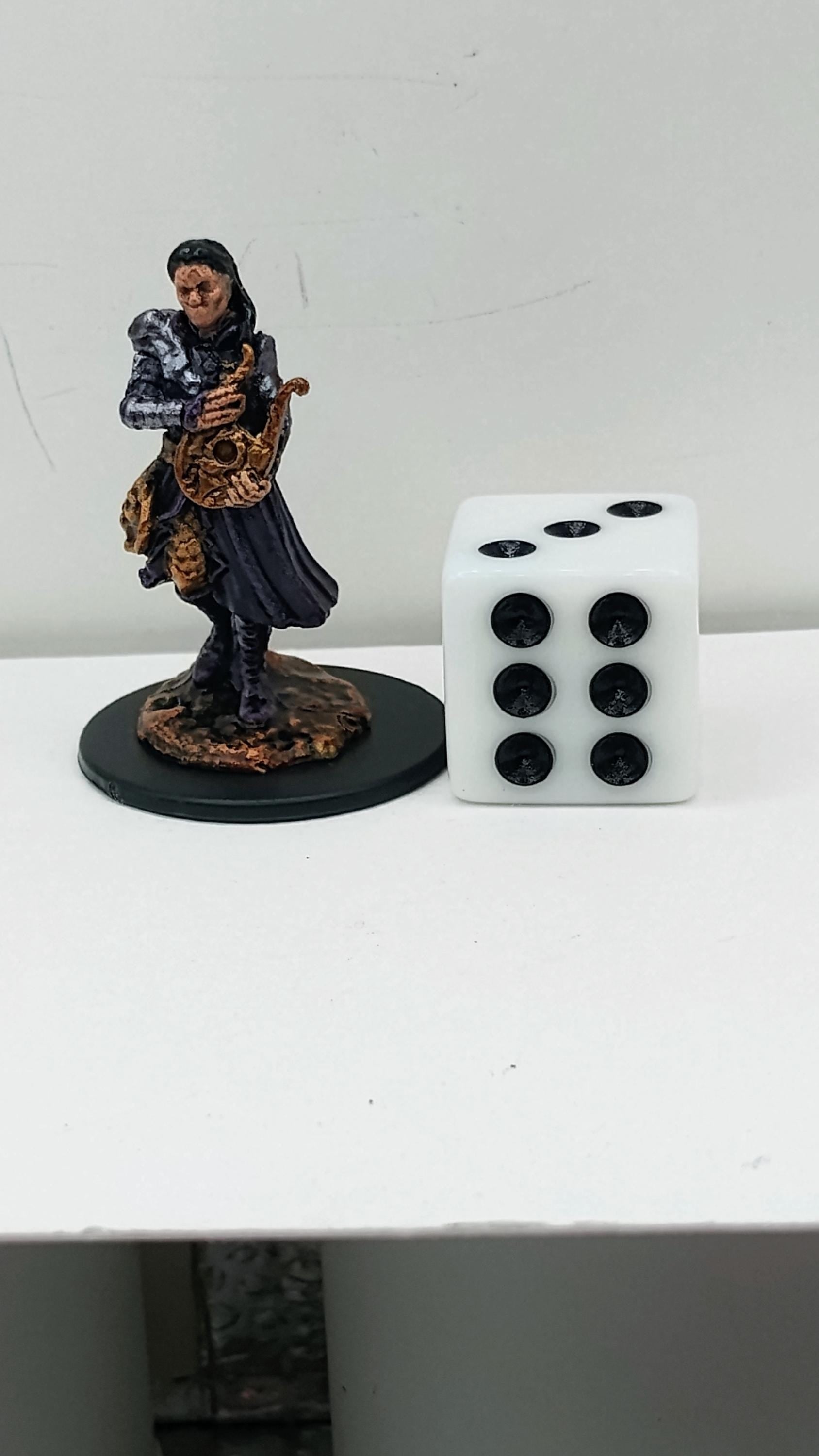 With haunting eyes and a serpent's poise, this Yuan-Ti Bard weaves enchantments through her lyre, her melodies laced with venomous charm. Cloaked in deep violet and adorned with scaled motifs, she entrances both allies and enemies with every sinister note.